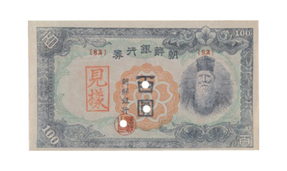 1909年7月大韩帝国公布「韩国银行条例」,同年10月以准备金1千万元设立旧韩国银行,开始执行中央银行业务。旧韩国银行券于1910年12月发行,分为一圆券,伍圆券,拾圆券3种纸币,1921年停止流通。