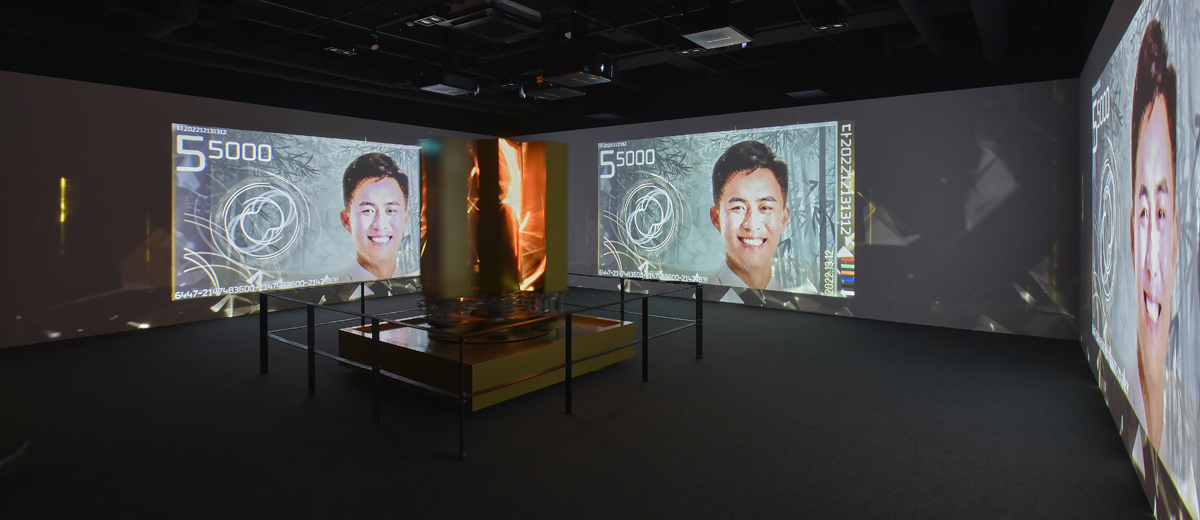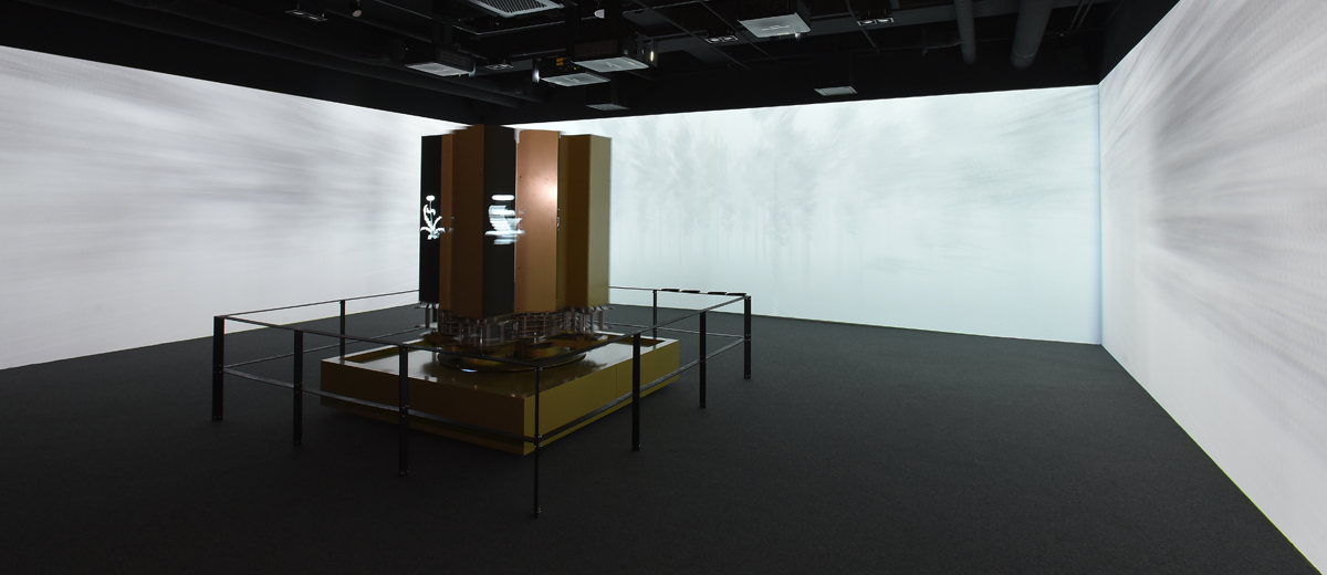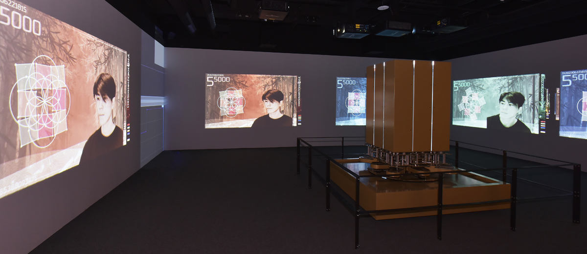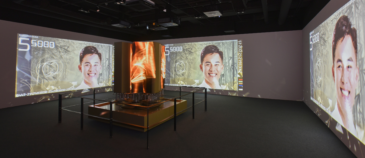 这里是‘活动的艺术作品’活动艺术体验空间,中央是活动的雕塑,动感浅绿色。几何学美感和神秘的绿色让我们回到了500多年前的江陵,申师任堂和栗谷李珥伟大的母子关系,也可以亲手制作的电子纪念货币。空间中间的动感浅绿色不仅有几何美感,也有神秘的动感让独一无二的电子图像展开。无限回转的电子引擎使得LED影像3面投影视频相呼应,再现了乌竹轩的历史。就像数百年前伟大的母子诞生的乌竹轩梦龙室一样,动感的绿色为我们带来独特的未来价值。