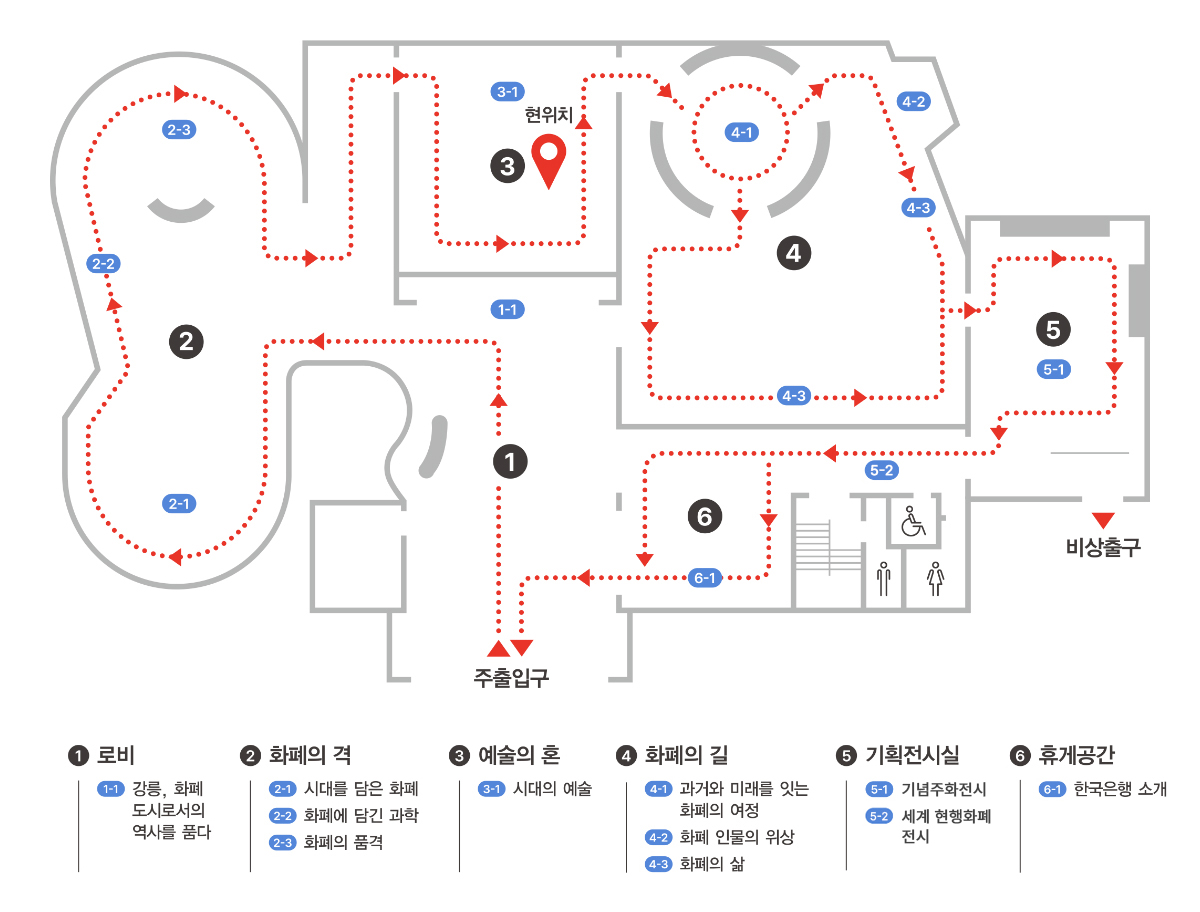 이 곳은 ‘움직이는 예술작품’이라는 뜻의 키네틱 아트 체험공간으로 공간 중앙에 움직이는 조형물 키네틱 미디어 아트가 자리하고 있습니다. 기하학적이면서 신비롭게 움직이는 키네틱 미디어 아트를 통해 우리는 500여 년 전 강릉에 실존했던 신사임당과 율곡 이이라는 위대한 모자의 역사를 감상하며, 자신의 참여를 통해 매 순간 달라지는 디지털 기념 화폐를 만들어 볼 수 있습니다.